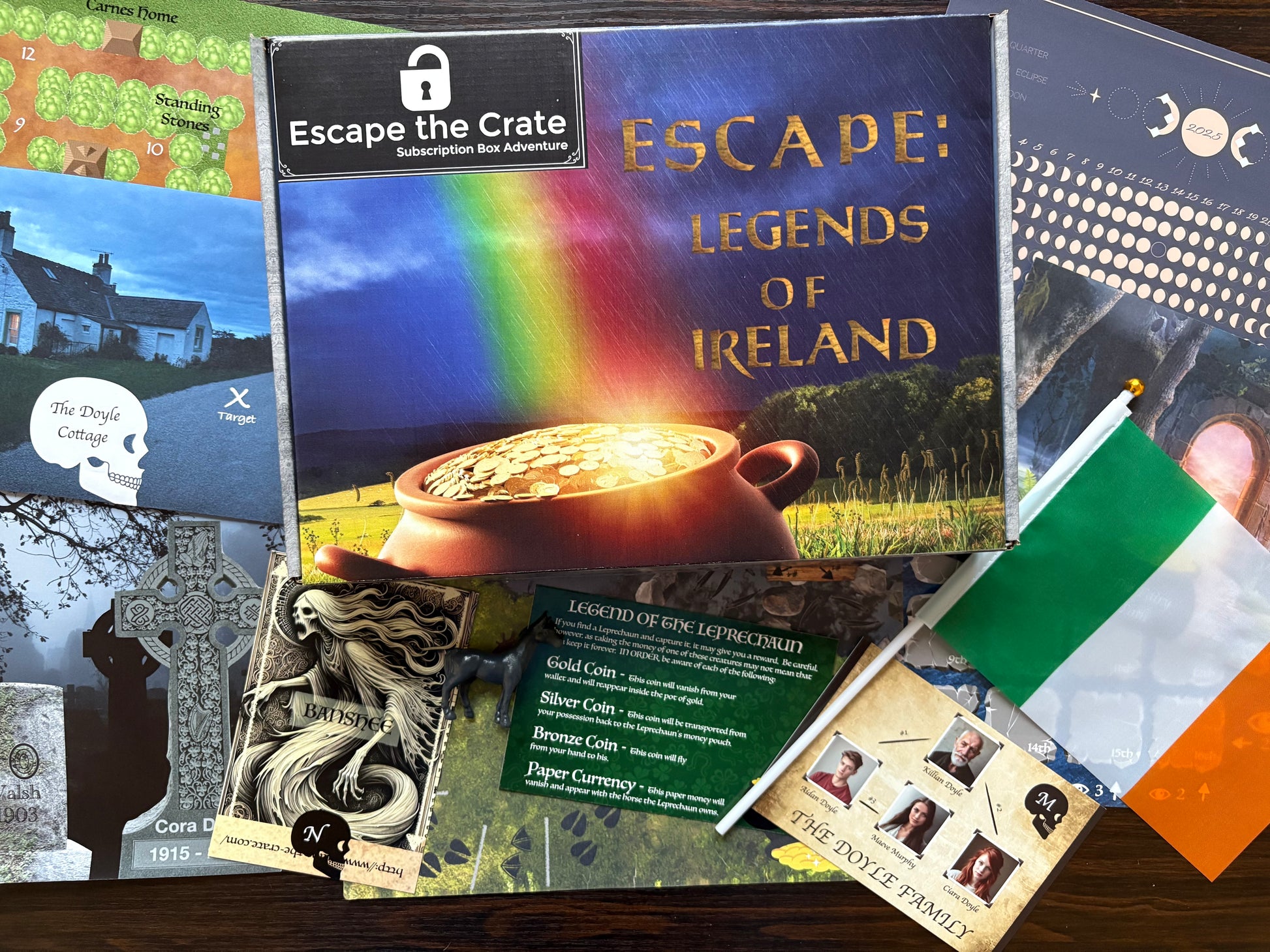 Travel to Ireland to explore some of the most famous legends and encounter some of the mystical creatures said to reside there. In this box, we have 2 separate games inside… one that is family-friendly… and one that is a bit scarier. In the first game, travel to the Emerald Isle and accept the invitation of the fairies to enter their realm. You might come face to face with a Leprechaun and get a chance to chase after his loot… or you might encounter the Púca, a shape-shifting troublemaker. Meet all of their challenges to bring home some of the ancient knowledge of Ireland. In the other game, however, you will face the old country at night. A local family has been seeing omens of death… from the headless horseman known as the Dullahan to the piecing wails of the Banshee. It is up to you to face the darker legends to see if you can break the curse on that family… but beware that it doesn’t spread to you. Both games are in this one box, so you can experience all that the Emerald Isle has to offer!